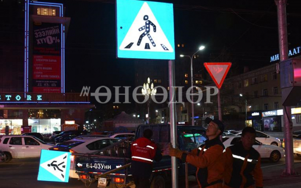 “Улаанбаатар зам засвар, арчлалтын газар” ОНӨААТҮГ-ын Үйлдвэрлэлийн алба энэ сарын 21-ний шөнө Сүхбаатар дүүргийн 4 дүгээр хороо, Улсын Их Дэлгүүрийн өмнө буюу Хичээнгүй сайд Б.Цэрэндоржийн гудамжинд лед гэрэл бүхий явган хүний гарцын тэмдэг хоёр ширхэгийг суурилууллаа. Уг тэмдэг нь хоёр талтай, нараар цэнэглэгдэх бөгөөд хураасан цэнэгээрээ 10 цаг тасралтгүй асахаас гадна цэнэг хураах хугацаа нь 6 цаг юм. Мөн -45о С - +70оС температурт ажиллах чадвартай төдийгүй ашиглалтын явцад ямар ч нэмэлт төлбөр гарахгүй зэрэг олон давуу талтай.