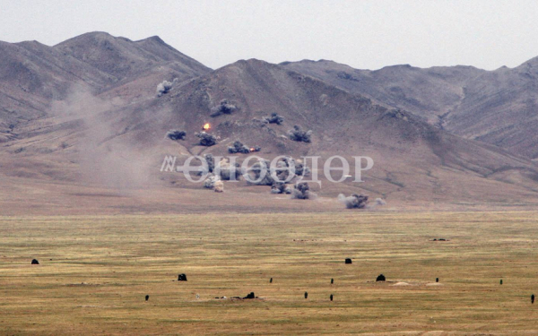 Энд тэндгүй хүчтэй дэлбэрэлт болж, чих дөжрөм дуунаас нь охид, бүсгүйчүүд давхийн цочиж, зарим нь чихээ даран сууж харагдав. Очир толгой орчмын газар тэр чигтээ утаа, тоосонд дарагдаж, дарийн үнэр хамар цоргино. Дараалсан олон дэлбэрэлтэд газар хүртэл ёолж байна уу даа гэлтэй үе үе хүчтэй доргив. Зэвсэгт хүчний Хуурай замын цэргийн командлагч, бригадын генерал Б.Амгаланбаатарын илтгэснээр бол давшилтад орсон дайсны артиллерийн цохилт эхэлж буй нь энэ гэнэ. Дайсны бие бүрэлдэхүүн, хүч хэрэгсэл манай артиллерийн цохилтын бүсэд орж ирмэгц хориглолтод байсан Зэвсэгт хүчний мотобуудлагын батальоны “Катюша” буюу “БМ-21” хариу гал нээж, тийрэлтэт сум нь цахилгаан цахилж, аянга буув уу гэлтэй нирхийх нь бахархалтай. Артиллерийг “дайны бурхан” хэмээн нэрлэдэг нь үнэн бололтой. Ийнхүү манай артиллер, танк эсэргүүцэгч залуурт сум, “Т- 72” танк, БТР-үүд давшиж буй дайснуудад суман мөндөр буулгаж эхлэв ээ. Улмаар хориглолтод байсан манай мотобуудлагын батальоны бие бүрэлдэхүүн сөрөг давшилтад орж, ухарсан дайсныг мөрдөн хөөв. Хуурай замын цэргийн командлагчийн илтгэснээр хориглох байлдааны үеэр манай цэргүүд дайсны бие бүрэлдэхүүн, зэвсэг техникт ихээхэн хохирол учруулж, агаарын байны 90, газрын байны 99 хувийг устгажээ. Дайснаа дарж, дархан цолоо мандуулсан манай мотобуудлагын батальоны бие бүрэлдэхүүн, зэвсэг техниктэйгээ ёслолын жагсаалаар явж, алга ташилтаар мялаалгав. Энэ бүхэн Зэвсэгт хүчний Тавантолгой дахь сургалтын нэгдсэн төвд уржигдар болсон байлдааны буудлагатай Мотобуудлагын батальоны хээрийн сургуулийн үеэр болсон юм. Байлдааны буудлагатай хээрийн сургуульд Зэвсэгт хүчний найман анги, салбарын 500 шахам бие бүрэлдэхүүн, 60 гаруй нэгж зэвсэг техниктэйгээ оролцлоо. Зэвсэгт хүчний хэмжээнд сургалт, дадлага дууссан хавар, намар хээрийн ийм сургууль хийдэг аж. Хаврын хээрийн сургуулийг Батлан хамгаалахын сайд Б.Бат-Эрдэнэ, УИХ-ын Аюулгүй байдал, гадаад бодлогын байнгын хорооны дарга, гишүүд үзэв. ЗХЖШ-ын дарга, дэслэгч генерал Д.Даваа, тус штабын удирдах бүрэлдэхүүн тэдэнд хээрийн сургуулийг тайлбарлаж, ажлаа танилцууллаа.