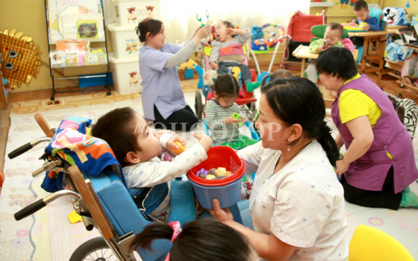 Манай улс хөгжлийн бэрхшээлтэй хүүхдүүдийн тусгай зургаан сургууль, хоёрхон цэцэрлэгтэй. Хараа, сонсгол, оюуны бэрхшээлтэй хүүхдүүд 186 дугаар цэцэрлэгт хамрагддаг бол тархины саа буюу хөдөлгөөний бэрхшээл, дауны хам шинжтэй, аутизмтай хүүхдүүдийг X цогцолбор хүлээн авдаг. Ой зургаан сартайгаас зургаа хүртэлх насны 120 хүүхэд энд сурч байна. Тэдний 80-85 хувь нь тархины саа буюу хөдөлгөөний бэрхшээлтэй бол ес нь дауны хам шинжтэй, гурав нь аутизмтай, бусад (хавсарсан бэрхшээлтэй болон хэвтрийн) 11 хүүхэд, 40 гаруй багш, ажилтны хамт гуравхан өрөөнд хуваагдан хичээллэж байна. Жирийн цэцэрлэгүүд хүүхдүүдийг хөгжүүлэхэд голчлон анхаардаг бол энд боловсролоос гадна эмчилгээ хийх нь хамгийн чухал. Тиймээс асрамжийн газрын хүүхдүүдийн 58 дугаар цэцэрлэгээс олгосон дөрвөн өрөөний нэгийг эмчилгээнийх болгожээ. Уг нь ийм бэрхшээлтэй хүүхдүүдийг тэрэг, тэргэнцэр, зогсоогч, усан эмчилгээ зэрэг тусгай тоног төхөөрөмж бүхий өрөөнд эмчлэх ёстой. Гэтэл жижигхэн умгар өрөөнд нэг тэрэг тавихад л бусад хүүхэд багтах зайгүй болдог учраас тоног төхөөрөмж нь агуулахад “хэвтэж” буй гэнэ.