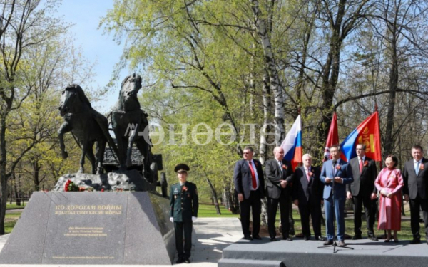 Аугаа Эх орны дайны Ялалтын 70 жилийн ойг тохиолдуулан бүтээсэн Монголын ард түмний бэлгийн “Ялалтад тэмүүлсэн морьд” хөшөөний нээлтийн ёслолын арга хэмжээ Москва хотын Хүндэтгэлийн дэнж дэх Ялалтын цэцэрлэгт хүрээлэнд болов.