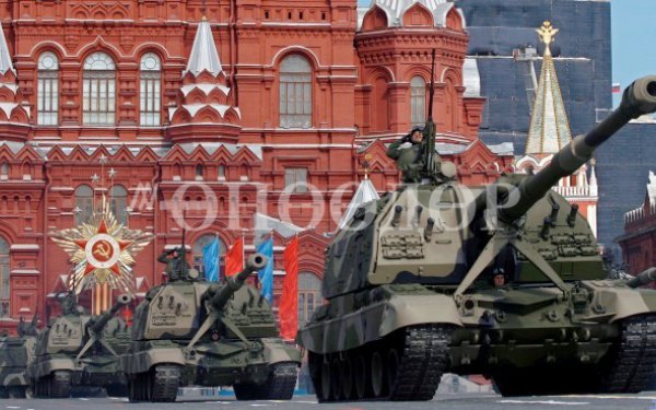 Байлдааны машин техникийн цувааны тэргүүнд Аугаа эх орны дайны үеийн “Т-34” танк явлаа. Түүний араас “Арбалет” байлдааны модуль бүхий “Тигр-М” хуягт автомашин, танк эсэргүүцэгч “Корнет-Д1” пуужинт систем болон “Тайфун-М”, “Тайфун-К” хуягт автомашинууд явж өнгөрөв. Улаан талбайд болсон байлдааны техникийн жагсаалын үеэр анх удаа Умард мөсөн далай буюу Арктикийн хүйтэн нөхцөлд ашиглах зенитийн пуужингийн “Тор-М2ДТ” цогцолбор болон зенитийн пуужин, их бууны “Панцирь-СА” цогцолборыг үзүүлсэн юм. Мөн тусгалын өндөр нарийвчлалтай “Искандер-М” пуужингийн цогцолбор, “Тор-М2У” болон “Бук-М2” зенитийн пуужинг танилцуулав.