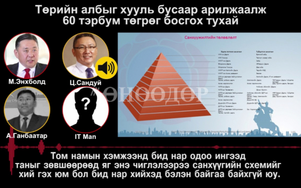 НЗДТГ-ын өмнө жагсаал хийсэн боловч зөрөөд хаалганы хэрэгт ороод байна. Тодруулбал, хаалгыг гурван удаа чанга биш тогшиход хаалга салаад уначихсан. Бидэнд бичлэг ч байгаа. Гэтэл хаалганы хавцас салж унасан явдлыг урьдчилан бэлдсэн байх магадлалтай гэж үзэж байна. Төрийн албыг цэвэр байлгахын төлөөх тэмцлээ үргэлжлүүлж, өнөөдөр дахин НЗДТГ-ын өмнө очиж, шаардлагынхаа хариуг нэхнэ. 2016 оны УИХ-ын сонгуулийн үеэр нийтэд ил болсон 60 тэрбум төгрөгтэй холбоотой бичлэгийг эвлүүлэг биш гэдгийг гадны шинжээчид нотолсон. Тиймээс төрийн албыг цэвэр байлгахын төлөө НИТХ-ын дарга Ц.Сандуй огцрох ёстой. Ер нь бол төрийн албыг худалдаж, мөнгө олно гэдэг бол эх орноосоо урвасан гэмт хэрэг. Энэ асуудлыг нарийн судалбал одоогийн УИХ-ыг тараах хэмжээний хуулийн зөрчил бий” хэмээв.