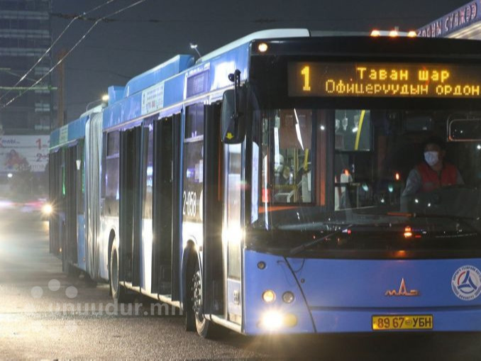 Нийслэлийн нийтийн тээврийн газраас гурван чиглэлд шөнийн автобусыг үйлчилгээнд явуулж байна. Тодруулбал, Шөнийн автобус ажлын өдөр 22:15-01:15 цаг хүртэл, амралтын өдөр 23:00-01:50 цаг хүртэл иргэдэд үйлчилж байгаа аж.